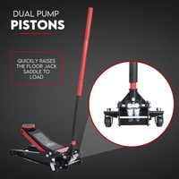 This 3000kg super low profile trolley jack has two heavy-duty swivel casters and two fixed wheels for easy load-carrying on a hard and smooth floor. The handle provides an easy clutch and makes hoisting your vehicle safe and easy. Perfect for low vehicles with a minimum height of 75mm.