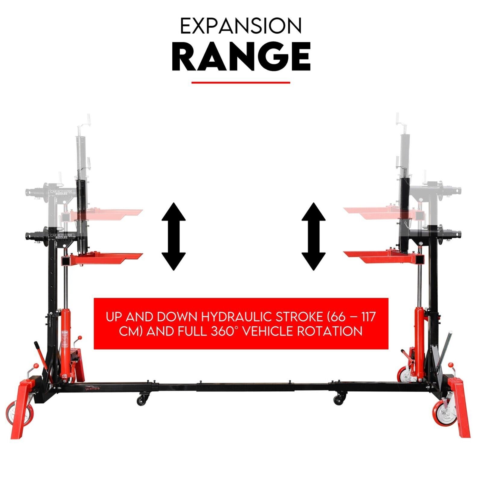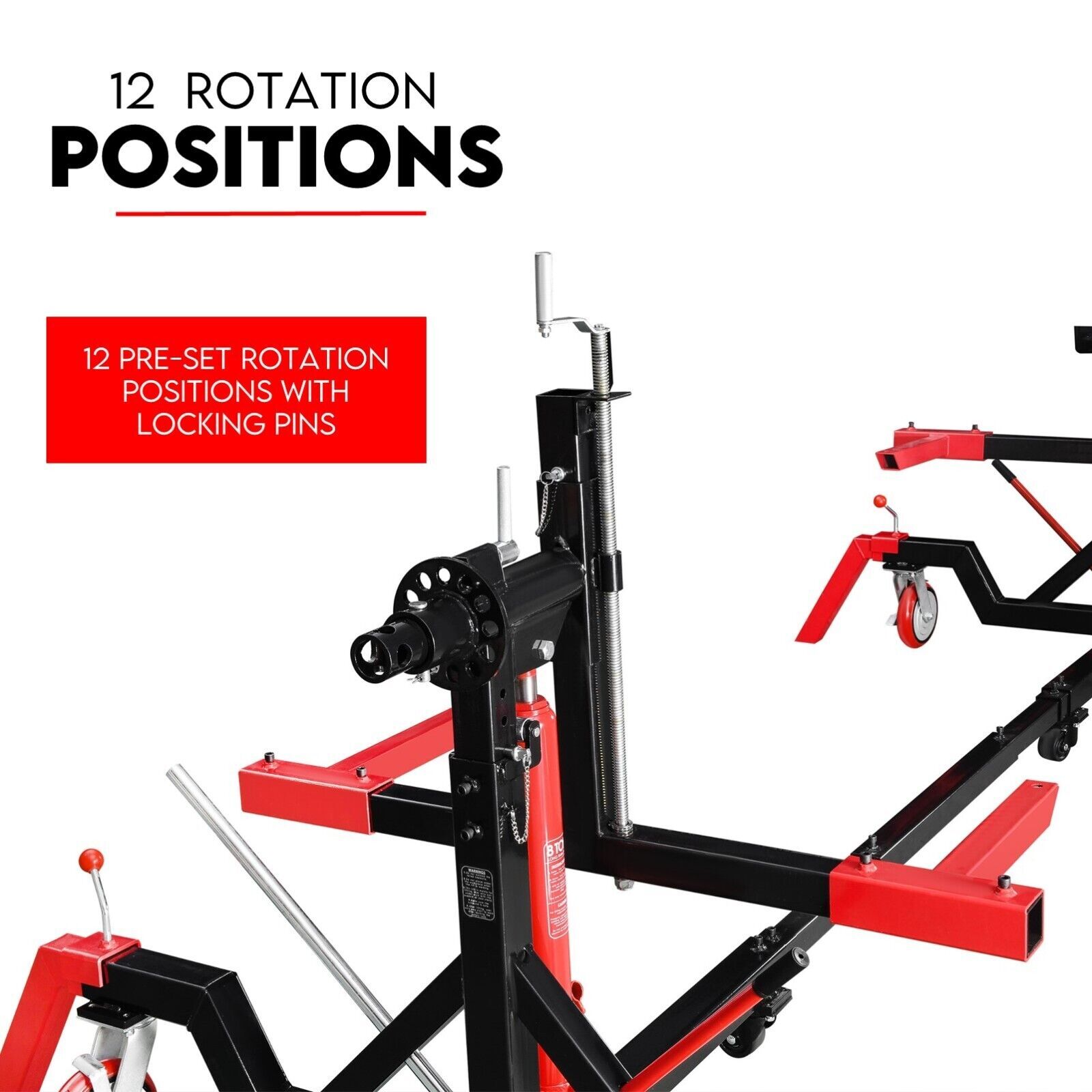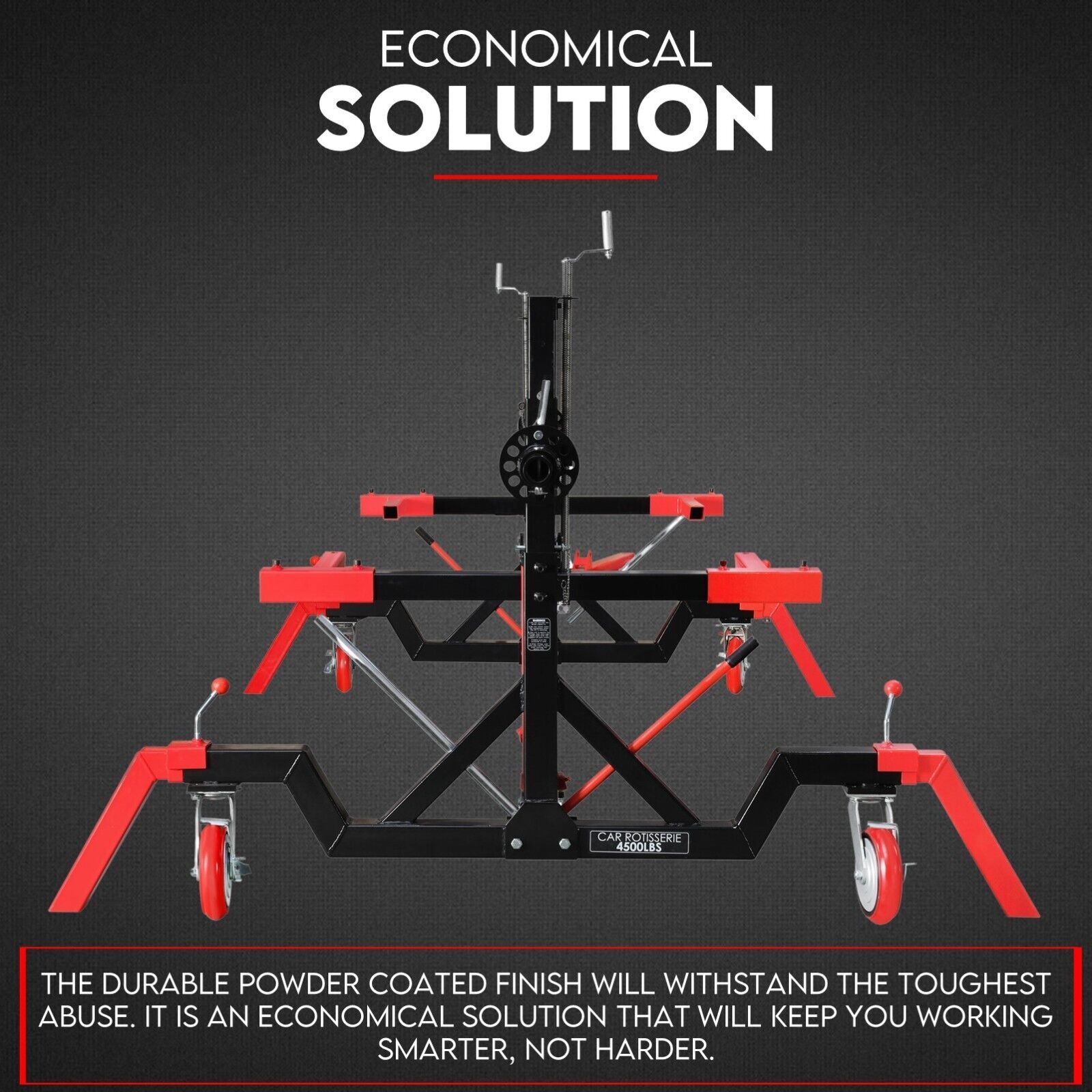 Fiernero Auto Rotisserie 4500LBS is perfect for body shops, gear drives, race car fabrication, and classic car restoration. It includes outriggers (4 stabilizer legs) and 4 locking casters to keep the rotisserie in place.