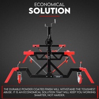 Its heavy duty steel construction and adjustable width makes your work easier and smoother. This rotisserie can fully rotate 360 degrees and saves you time and effort when performing any operation. Easier on your body and less fatigue while working on the vehicle.
