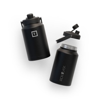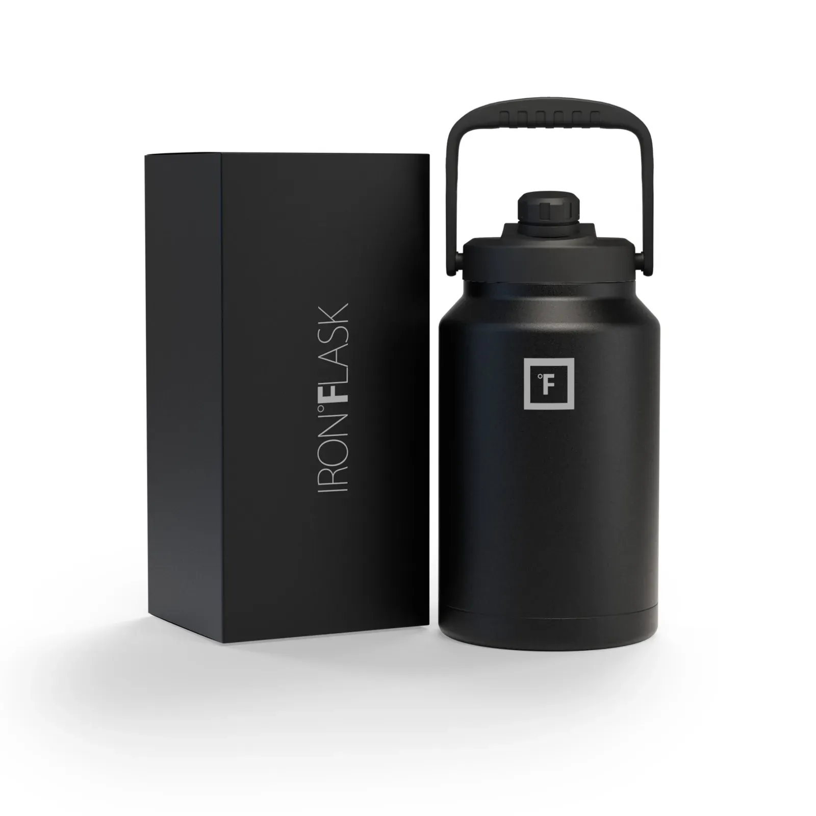 Iron Flask Bottle with Spout Lid, Midnight Black, 128oz/3800ml. Whoever said “bigger isn’t always better” obviously never got their hands on an Iron Flask One-Gallon Water Bottle. This titan of thirst quenching holds a whopping 128 oz of your favorite beverage in a vacuum-insulated, rough-and-tumble container that can stand up to any adventure. And with a huge array of colors, it’s easy to match your bottle to your personal brand. With the Iron Flask 128 oz water bottle, the only thing you need to worry about is how close you are to a bathroom.