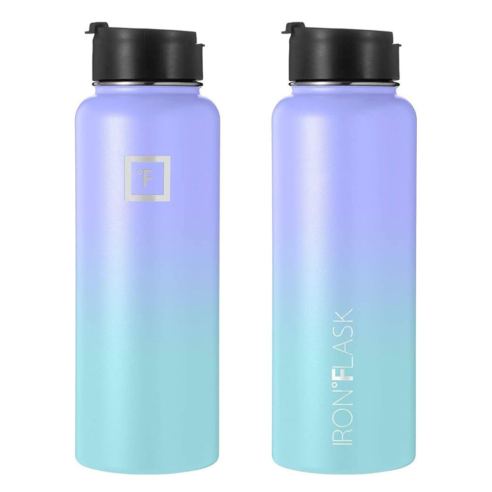 Iron Flask Wide Mouth Bottle with Straw Lid, Cotton Candy, 40oz/1200ml - Sip your favorite beverage at the temperature the drink gods intended thanks to the double-wall vacuum insulation of the Iron Flask 40 oz Water Bottle With Straw Lid— 24 hours of icy coldness and 12 hours of piping hotness while staying sweat-proof. This bottle can stand up to roughhousing, but it’s not just another big, dumb water bottle. It features a wide mouth and a carabiner straw lid for quick filling and spill-proof sipping on the go, plus a flip lid and a stainless steel screw-on lid for more options.