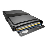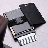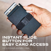 The Statik Wallet in Black Aluminum. Push the button. Grab your card. The instant-access button slides your cards up and fans them out, so you can quickly and easily find the card you need.