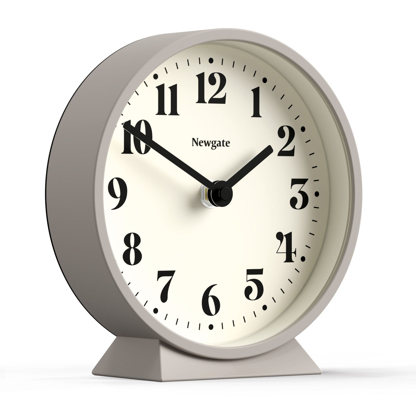 The Theatre Mantel Clock in Stone is a contemporary mantel or desk clock with a minimalist dial.