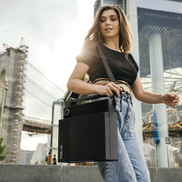 For effortless transportation, the Revolution GO boasts a retractable handle and detachable guitar strap, offering a customizable carrying solution. The removable lid serves as a display for your five vinyl records of the day, adding a touch of style to your setup.