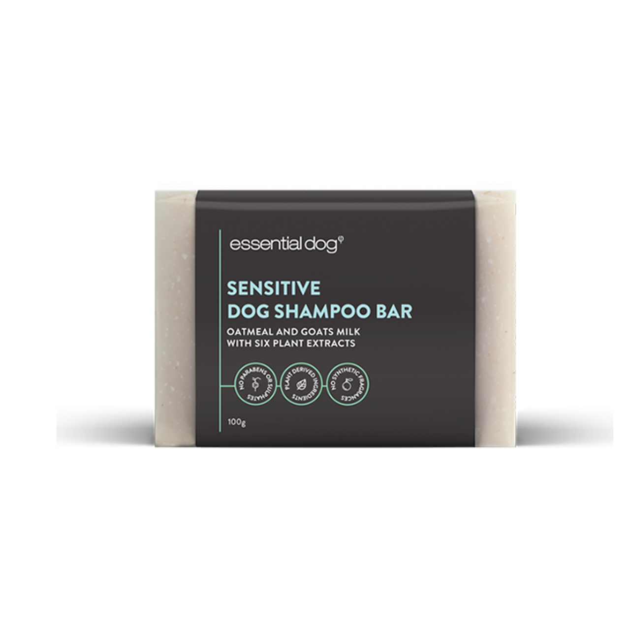 A handcrafted sensitive dog shampoo bar with six plant extracts for a healthy, shiny coat. These ingredients produce an ultra mild bar and help maintain a healthy skin and coat. Packed with natural oils of coconut, olive, rice bran, almond and sunflower for a beautiful lather and non-irritating bath. Shea butter and colloidal oatmeal are used for their moisturising and anti-irritant properties with a beautiful blend of 100% premium quality pure and unadulterated essential oils. Suitable for all breeds, ages and skin types.