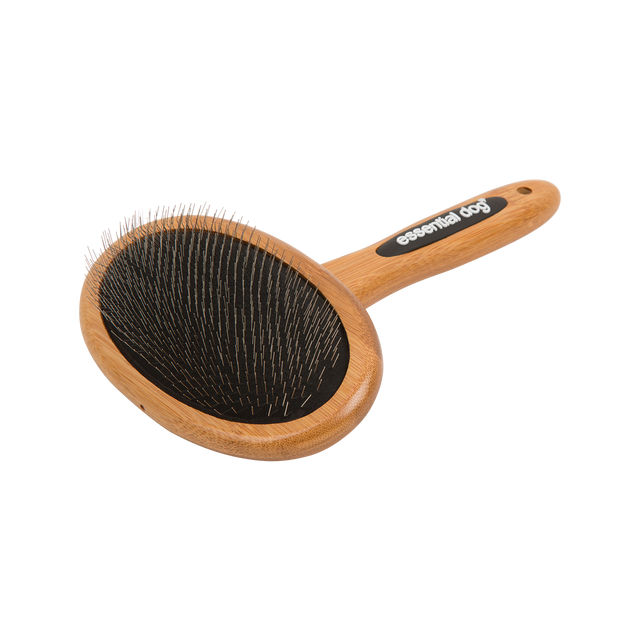Regularly brushing your dog's coat is an essential part of grooming and coat care. This natural bamboo slicker brush is an excellent choice for breeds, such as cavoodles and spoodles prone to matting and knots. The sharp stainless steel bristles are angled so they won't dig into the skin and effectively cut through tangles and knots and assist with preventing matting. This stylish slicker brush is easy to use, has a comfortable, cushioned handle, and made from naturally grown wild bamboo.The bamboo treatment upon harvest uses high-pressure water and heat instead of pesticides. Suitable for all ages, non-shedding coats, matting and medium to long haired coats.
