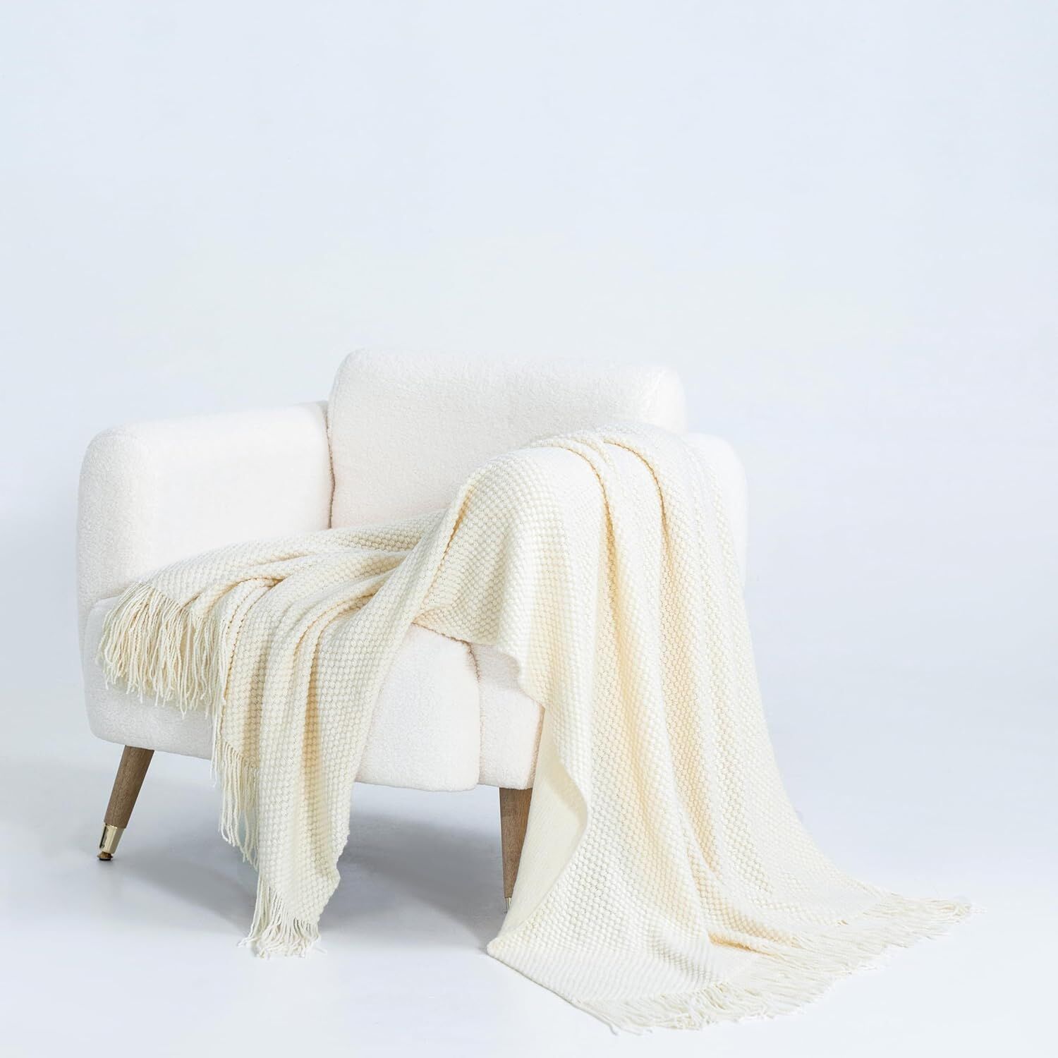 Indulge in the ultimate comfort and luxury with the Micro Plush Knitted Woven Throw Blanket. Crafted from premium acrylic fabric, this ultra-soft and cozy throw blanket offers warmth and elegance in one versatile package. Designed to be lightweight yet incredibly warm, its perfect for adding a touch of comfort to your couch, sofa, or bed. The modern knitted design adds a sophisticated charm to any living space, making it an ideal decorative piece that also serves a practical purpose. Whether youre curling up with a book or watching your favorite show, this throw blanket is your perfect companion for all seasons.