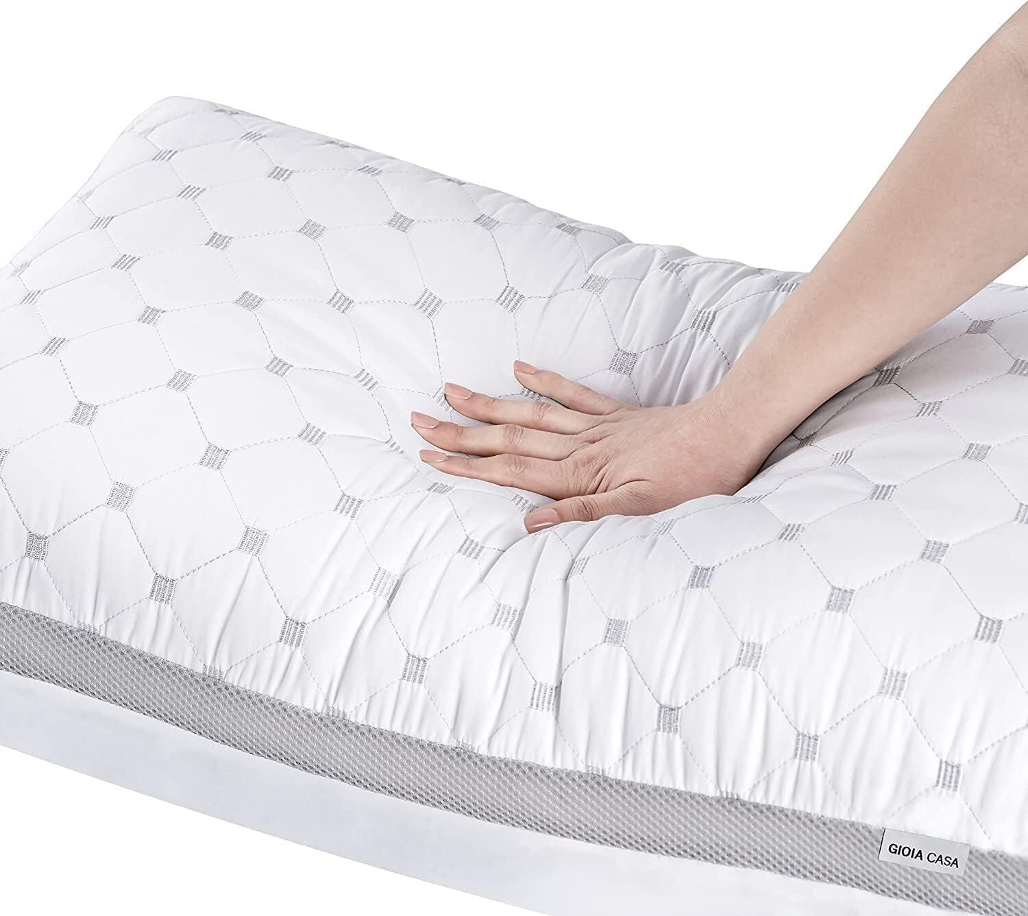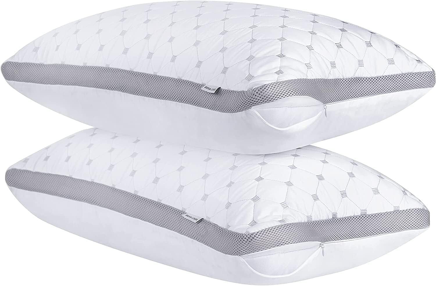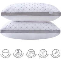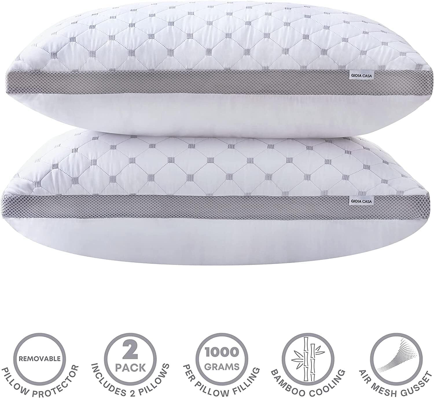 Premium Bamboo Cooling Twin Pack Plush Down-Like Pillows - Medium to High Profile (2PCS) - with Free 2 Quilted Pillow Protectors (Improved Version)