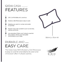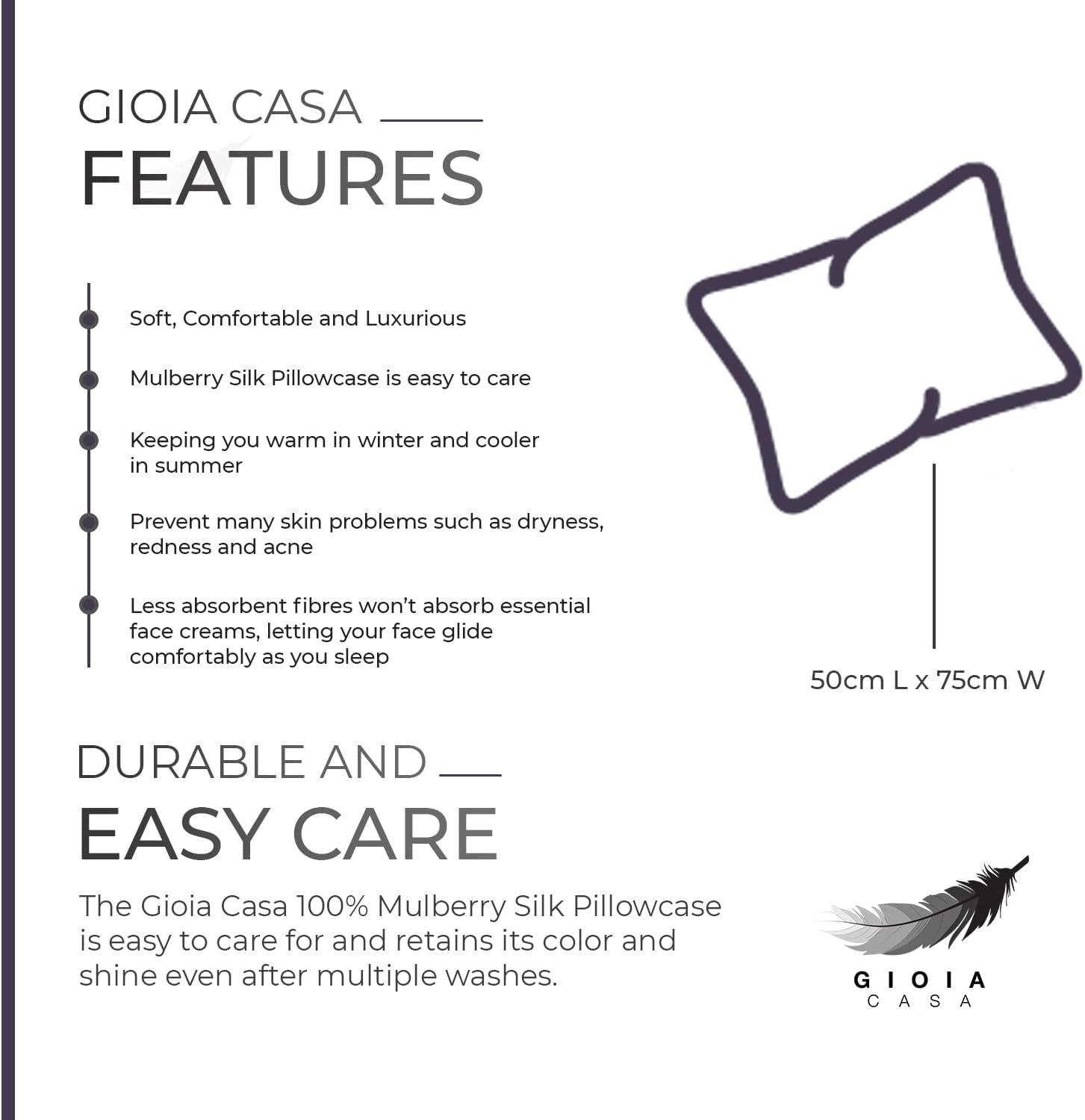 Gioia Casa Luxury Pillowcase - 100% Pure Mulberry Silk on Both Sides - Soft Anti-Wrinkle, Hypoallergenic, Washable Bed Pillowcases - Premium Pillow Cover for Hair and Skin Protection