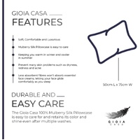 Gioia Casa Luxury Pillowcase - 100% Pure Mulberry Silk on Both Sides - Soft Anti-Wrinkle, Hypoallergenic, Washable Bed Pillowcases - Premium Pillow Cover for Hair and Skin Protection