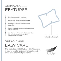 Gioia Casa Luxury Pillowcase - 100% Pure Mulberry Silk on Both Sides - Soft Anti-Wrinkle, Hypoallergenic, Washable Bed Pillowcases - Premium Pillow Cover for Hair and Skin Protection