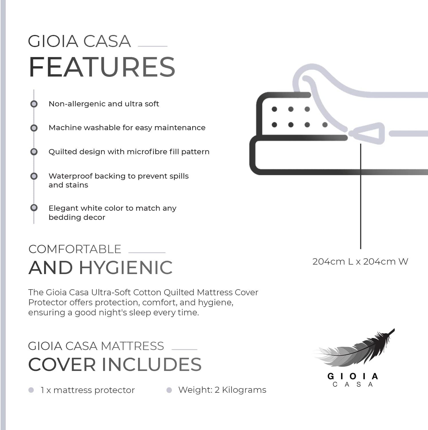 The Ultra-Soft Cotton Quilted Mattress Cover Protector is designed not only to protect your mattress but also to enhance your sleep experience. Its soft cotton fabric, combined with the elegant quilted design, offers luxurious comfort, while the anti-microbial and hypoallergenic properties ensure a clean and healthy sleep environment. The waterproof backing provides peace of mind by safeguarding your mattress from any spills or stains. Invest in this high-quality mattress protector today and enjoy the perfect blend of comfort, protection, and style every night.