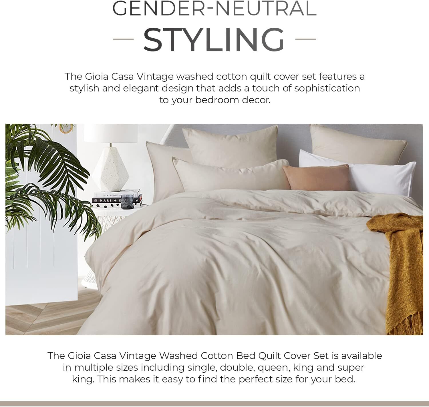 Enhance your bedroom with the 100% Cotton Vintage Washed Bed Quilt Cover Set. This luxurious duvet cover set combines timeless elegance with supreme comfort, making it an ideal choice for any bedroom decor.