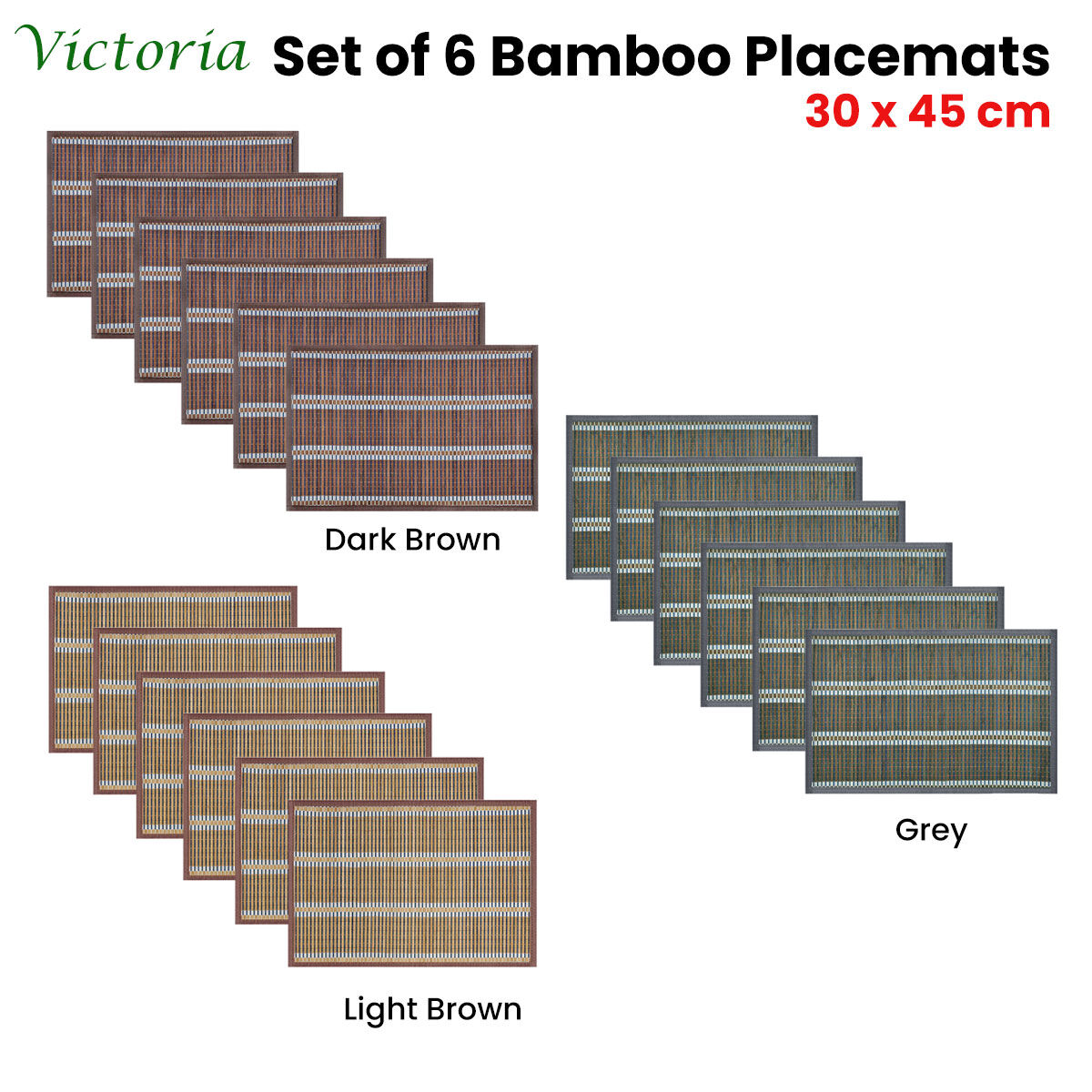 Looking for a versatile decor for you table setting? This Set of 6 Victoria Bamboo Table Placemats 30 x 45cm will give the flexibility to change up your table setting whenever you desire a fresh look. Placemats are designed to protect your table from spills, stains, and heat while adding a touch of elegance to your dining experience. It features woven design in stunning colour hues that can easily add stylish touch of any dining setting. With woven non-skid backing. Made from quality and easy care bamboo and polyester materials that will keep your table looking its best for years to come.