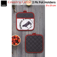 Upgrade your kitchen essentials with this Country Cattle Set of 2 Pot Holders 21 x 21 cm by Ladelle. This will protect you from heat related injuries in the kitchen. This pot holder is 100% AZO free dyes and made to European Quality Standards. It features a cattle design with quilted pattern in white, grey, taupe, and red colour tones. It is made from quality 100% cotton fabric with polyester filling for long lasting use.