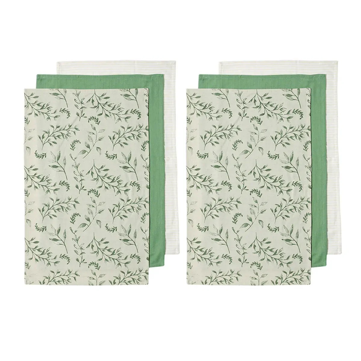 Grab a fresh kitchen towel anytime with this Grown Ivy Set of 6 Cotton Kitchen Towels 45 x 70 cm by Ladelle. 100% AZO free dyes. Made to European Quality Standards. This kitchen towel is great for drying your hands or wiping up a spill. It features a beautiful foliage design printed in fresh colour hues that will brighten up your kitchen space. It is made from 100% Cotton fabric with easy care properties and long lasting durability.