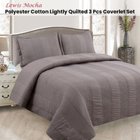 Embrace a touch of sophistication with the Lewis Mocha 3 Pce Lightly Quilted Polyester Cotton Coverlet Set Queen. This elegant ensemble features a captivating quilted / pintucking pattern in rich shade of mocha, transforming your bedroom into a haven of refined comfort. The lightweight quilting provides a gentle layer of warmth, making this set ideal for year-round use. Made from a blend of polyester cotton and polyester filling for a soft, breathable, and easy-care experience.