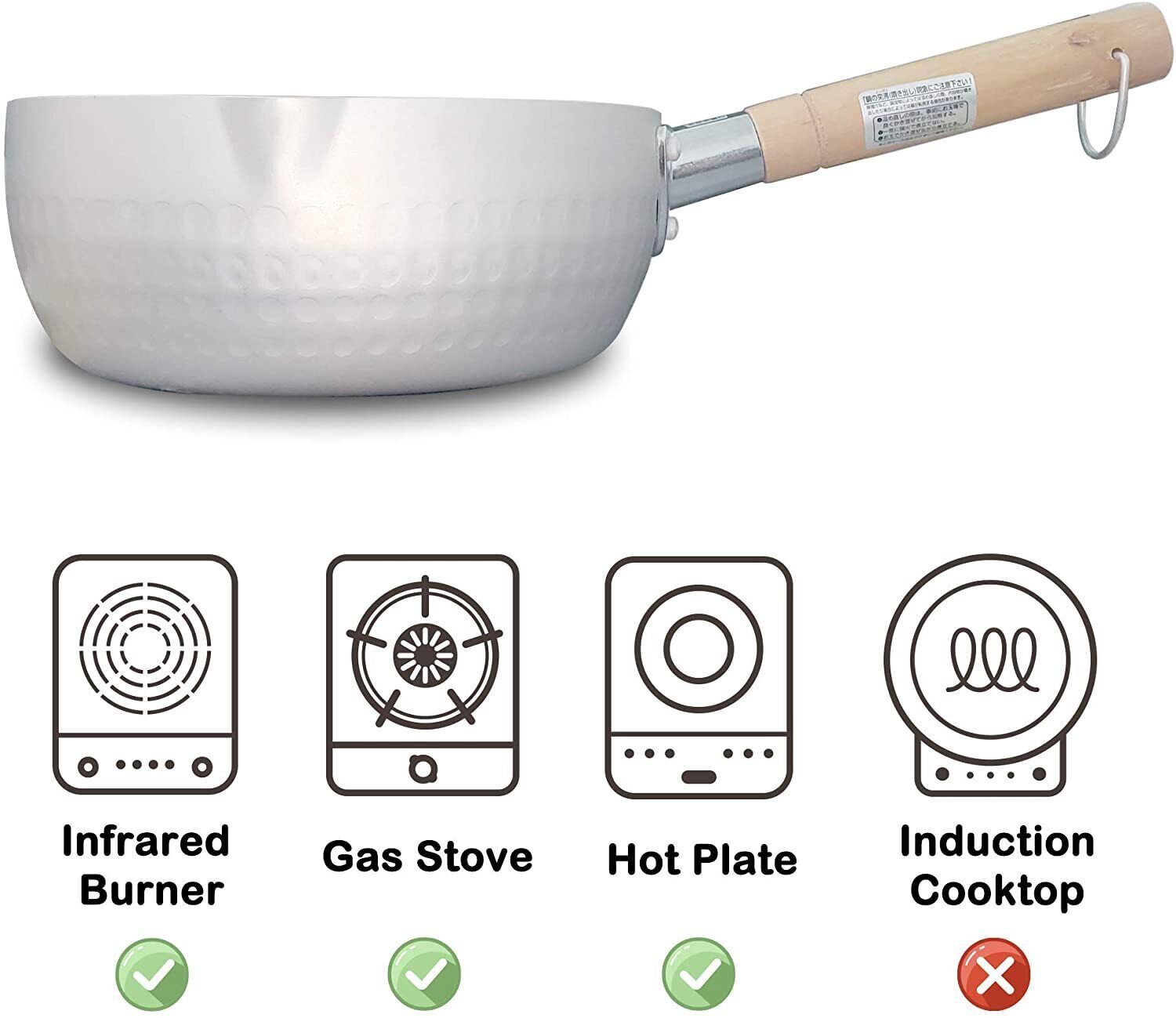 Justcook Japanese-style Aluminium non-stick Snow pot, popular in Japan, is multifunctional, has high-end quality, and makes your life better. This nonstick saucepan is made of Stainless Steel, including 2 heat-conducting layers, a rust and abrasion-resistant coating for ultra-durability, and heats quickly and evenly. The ergonomic design on the wooden handle makes it is comfortable to grip. The edge of the pan is designed with a pour spout, which will allow the soup to pour smoothly and avoid spilling.