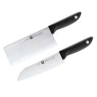 The Zwilling Twin Point Gift Set 32332-002 (ZW-K12) is a versatile and essential set that includes a Chinese chef's knife and a Santoku knife. The knives are crafted using Zwilling's ice-hardening process and feature precision-ground blades with comfortable PPR handles.