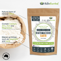 Diatomaceous earth is the most natural form of the mineral silica, which is vital for the formation of collagen, one of the most abundant compounds of the human body. Silica is found in things such as quartz, emerald, sand and fossils, and also in natural deposits found in the sediment of lakes and rivers. From these self-replenishing deposits, the Diatomaceous Earth can be harvested and cleaned up using a natural process, making it safe for us humans to consume.