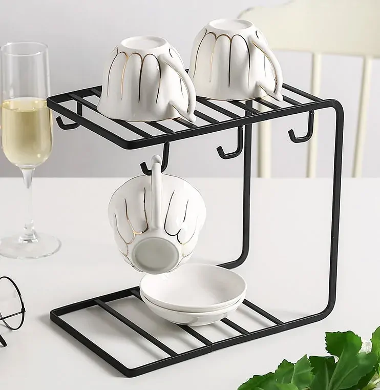 The mug cup drying rack can Hold 6 cups and 6 dishes, helps to dry the cups, easy to clean up.