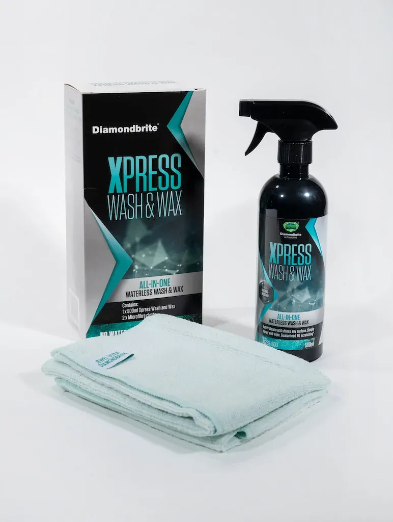 This pack includes a 500ml trigger waterless wash wax, along with two microfibre cloths. Experience the convenience and excellence of Diamondbrite Xpress Wash Wax, where cleanliness meets innovation.
