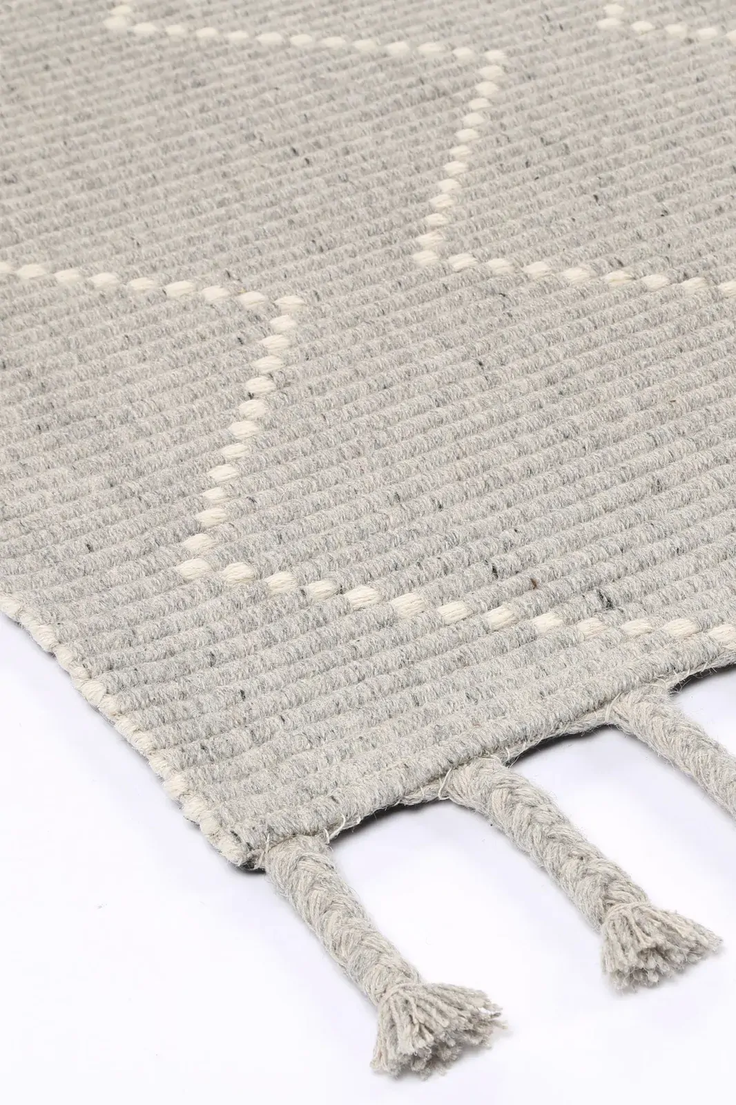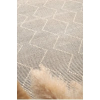Tribal: Complete any setting with this hand made rug. Soft, lustrous wool yarns are hand-tuftedto create contrasting textures including oversized loops and flat surfaces that are rich in dimension, beautifully styled with classic geometric patterns. Crafted using a 70% wool and 30% Polyester blend, this rug will accent any space with its calm and neutral colour palette making it the perfect choice to add the finishing touch to any room in the house.