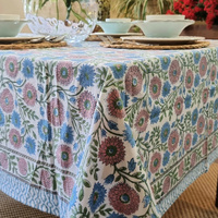 Our hand-block-printed tablecloths are artistically created by skillful artisans in Rajasthan. The tablecloth is suitable for a 6-seater dining table.