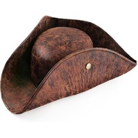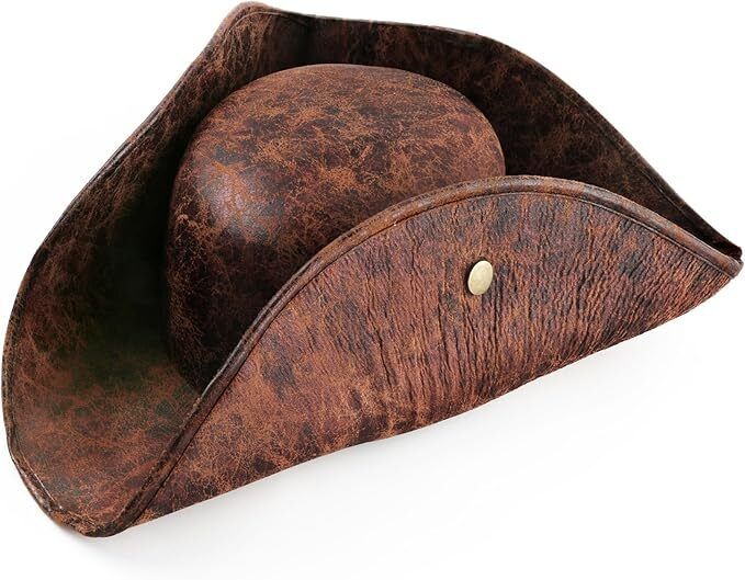 Channel your inner swashbuckler with the Durashape Brown Pirate Tricorn Hat, the perfect addition to any pirate, colonial, or captain costume. Crafted from high-quality faux leather, this hat is designed to replicate the look of a weathered, vintage tricorn with intricate wrinkling details that add a rich, lived-in character. Whether you're gearing up for a costume party, a historical reenactment, or cosplay, this tri-corner hat instantly transports you to the high seas or the Wild West.