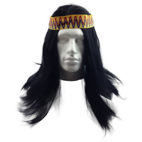 Mens INDIAN WIG Native American Fancy Dress Party Costume Hair Headdress New