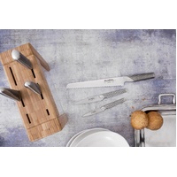 Elevate your culinary experience with the Global Ikasu 7-Piece Knife Block Set, a perfect blend of functionality and style. This exquisite set includes six of Global's best-selling knives, all housed in an elegant bamboo storage block with clear acrylic display windows, making it a stunning addition to any kitchen.