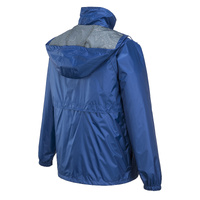 Packable fully lined jacket, open yoke, folds into a pocket for easy packing and travelling. Embroidery access.