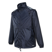 Packable fully lined jacket, open yoke, folds into a pocket for easy packing and travelling. Embroidery access.