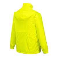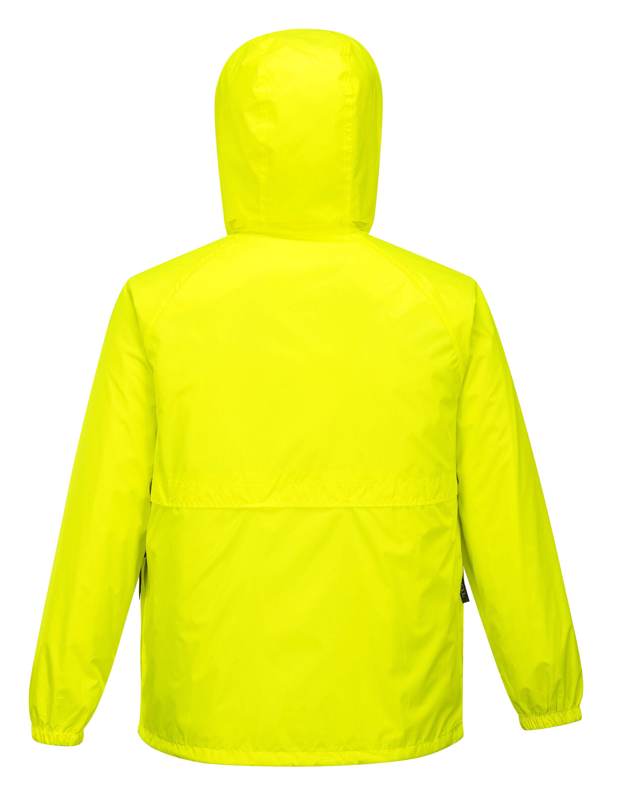 Packable fully lined jacket, open yoke, folds into a pocket for easy packing and travelling. Embroidery access.