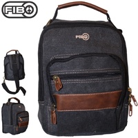FIB Canvas Sling Bag Shoulder Strap Messenger Travel Pack w Tablet Pocket - Black