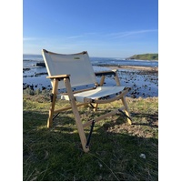 Bamboo Canvas Foldable Outdoor Camping Chair - Wooden Travel Picnic Park in Khaki/Beige