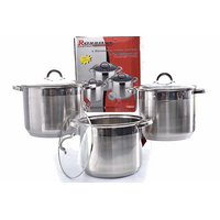 The Rossner Stainless Steel Induction Cookware Set you mentioned includes three pots with lids. Here are the details of the pots and their approximate sizes: