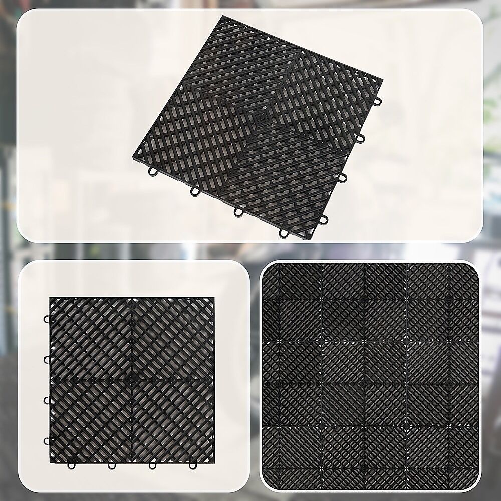 Made from impact-resistant polypropylene, these hard plastic tiles are designed to resist staining from oil, gas, and household chemicals. Their sturdy construction allows them to withstand heavy rolling vehicle loads, making them ideal for garage floors.