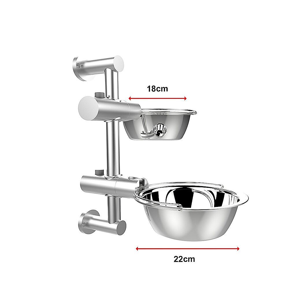 The stand can be securely affixed to the wall, and its bowl holder features a special locking system, ensuring stability during mealtimes and minimizing feeding-related noise. This setup provides a serene and comfortable dining space for your beloved pet. Elevated bowls prevent contact with the floor, reducing exposure to dirt-prone areas and creating a clean and secure feeding environment for your furry companions.