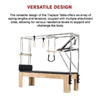 Engineered for unwavering stability and effortless adjustments, this table is a perfect fit for both home and professional studio settings. The versatile design of the Trapeze Table offers an array of spring lengths and tensions, coupled with multiple attachment sites, allowing for various resistance levels to support and challenge the body. Experience the premium performance that this table delivers, enabling you or your clients to access an incredible range of exercises, complete with full acrobatic hanging capabilities.
