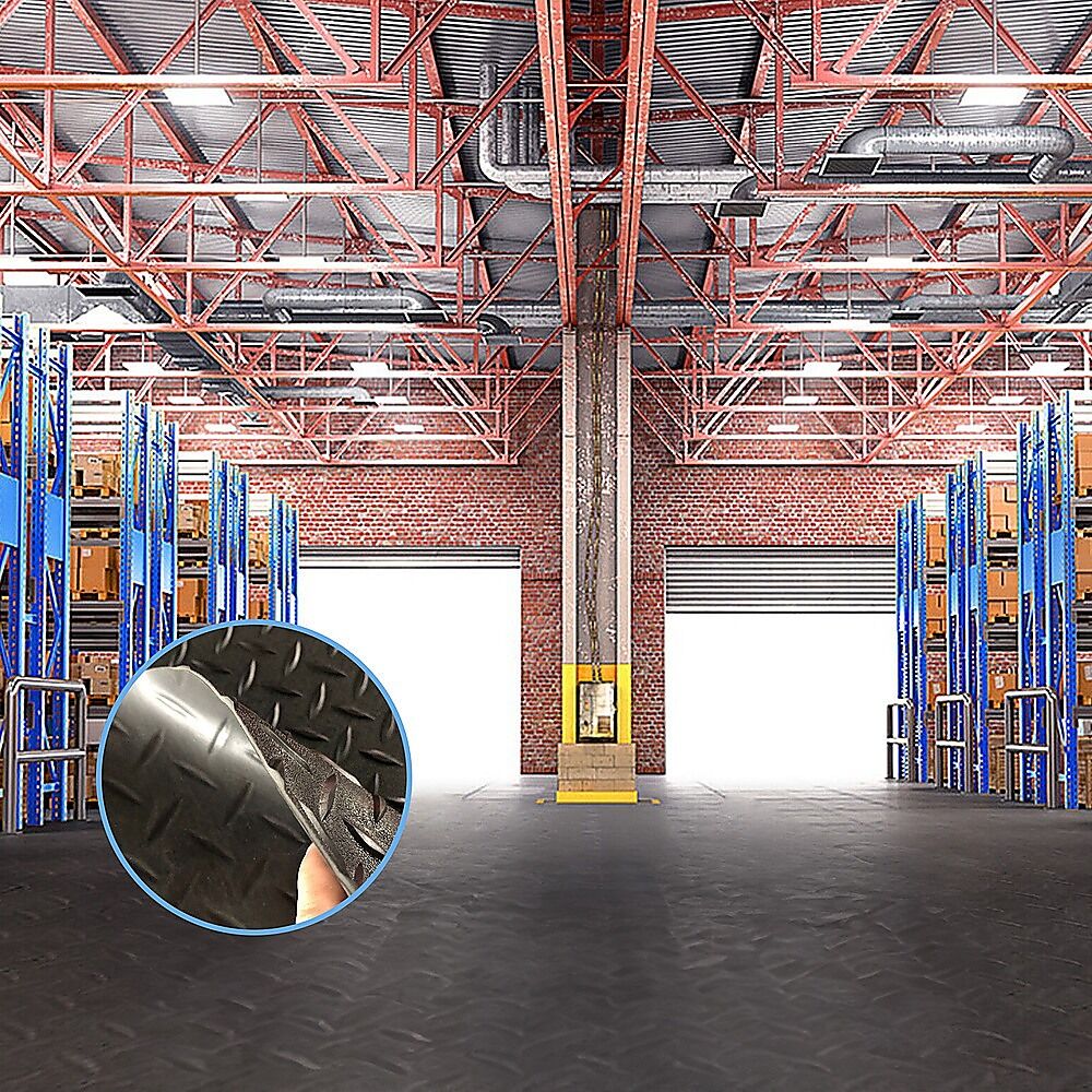 Experience the convenience of effortless installation with this resilient Randy Travis Machinery garage flooring mat. Requiring minimal maintenance, it presents a waterproof surface that prioritizes slip resistance. As a result of these impressive features, our garage floor mat has garnered popularity, finding utility in a multitude of spaces.
