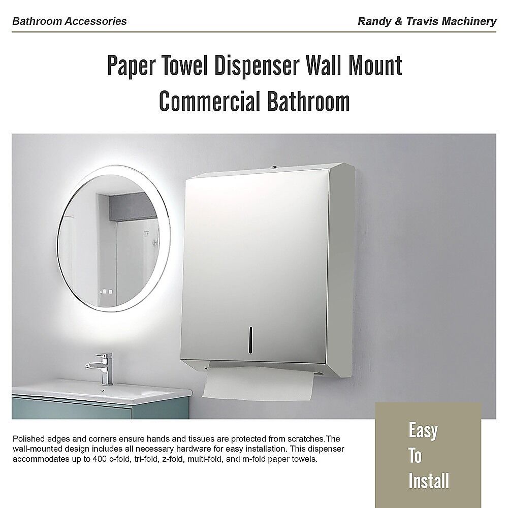 Optimize your restroom with the Paper Towel Dispenser Wall Mount Commercial Bathroom by Randy Travis Machinery. Designed for high-traffic areas, this dispenser boasts a large capacity and durable construction, ensuring long-lasting strength and easy maintenance. Perfect for offices, restaurants, schools, hospitals, and more, this dispenser adds a touch of convenience and hygiene to any environment.