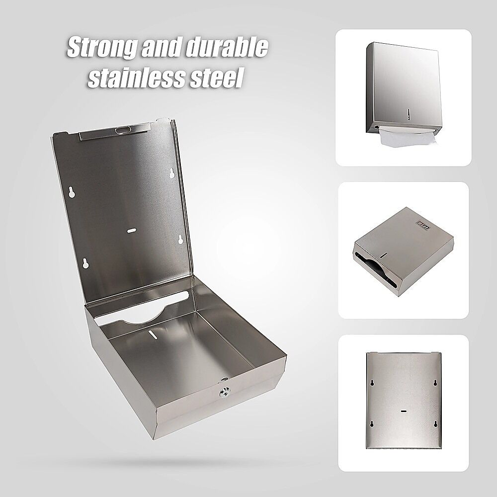 Made from brushed 201 stainless steel, this dispenser is thicker, easy to clean, and resistant to rust, providing long-lasting use. Polished edges and corners ensure hands and tissues are protected from scratches.The wall-mounted design includes all necessary hardware for easy installation.This dispenser accommodates up to 400 c-fold, tri-fold, z-fold, multi-fold, and m-fold paper towels.