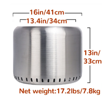 Inclusions: Smokeless fire pit, stainless steel cooking grill amp; carry bag