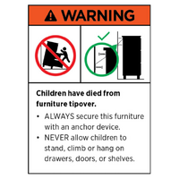 ⚠️ WARNING Children have died from furniture tipover. ALWAYS secure this furniture with an anchor device. NEVER allow children to stand, climb or hang on drawers, doors, or shelves.Product Code : V728-NK177206