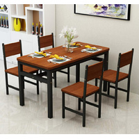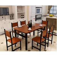 The 5-piece Dining Table Chairs Set effortlessly merges the inviting warmth of natural wood with a contemporary charm, elevating your living space to new levels of sophistication. Crafted with a seamless fusion of rustic allure and the sleek strength of steel, this deluxe set exudes refined elegance. Its streamlined profile beautifully captures the essence of modern simplicity, creating a captivating centre piece that embodies both style and functionality.