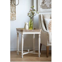 This beautifully hand crafted side table features beautiful details from top to bottom. Made with reclaimed hardwood our Shabby Square Side Table features a deep tabletop for easy nesting of objects. In contrast, its legs have been washed in white, shabby chic style. This creates a beautiful look with a side table that could find a home in not only shabby chic interiors but French provincial style spaces and beachside homes