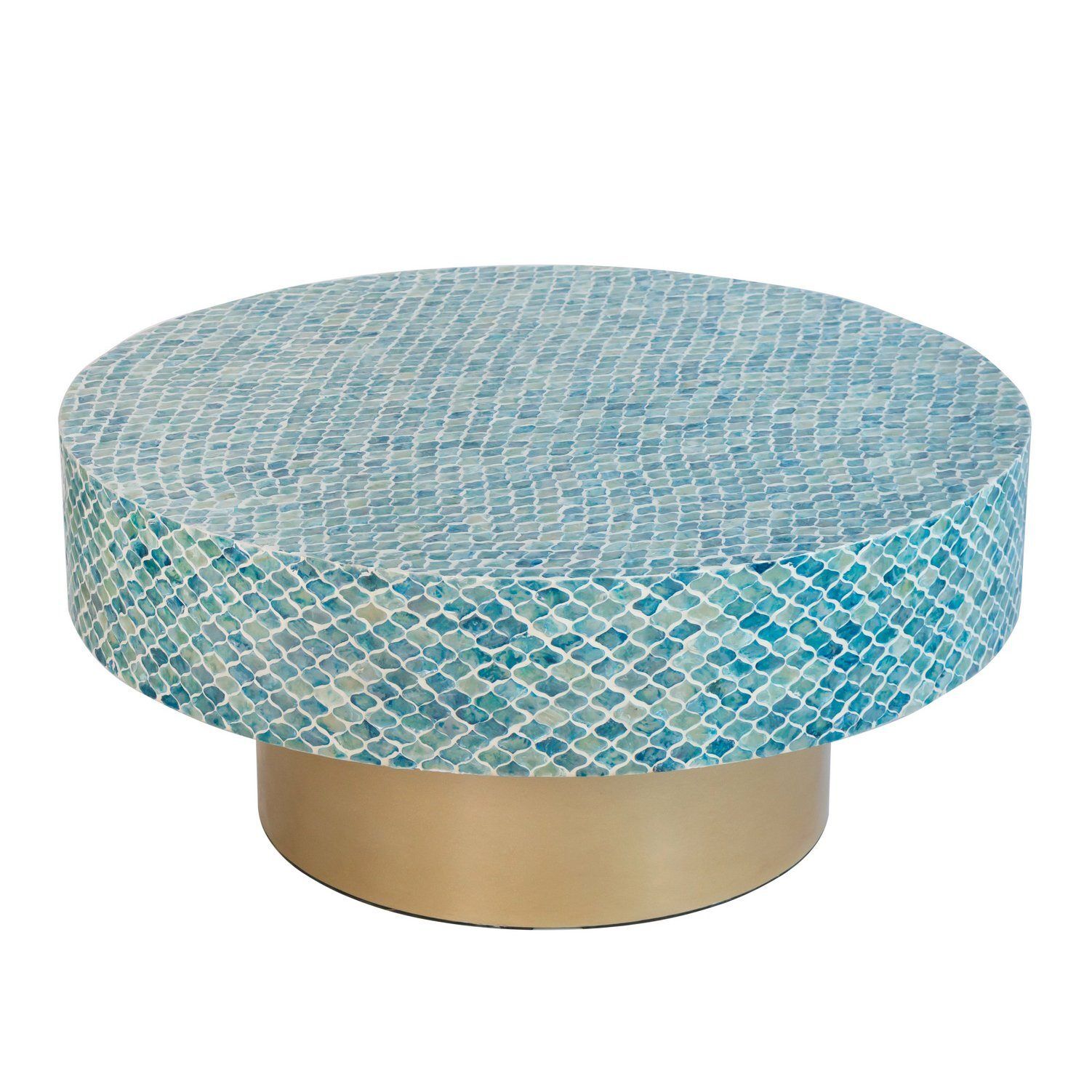 If youre looking for some island style in your home or space, then the Goa shell coffee table will do the trick. A heavy bottomed, beautifully shaped coffee table with a striking white background, its stand out feature is its unique covering of blue hued shell pieces. The beauty of shell is in its colour and ability to reflect light. The island feeling will not disappoint.