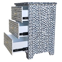 Our hand-crafted Mother of Pearl furniture is expertly crafted, imparting each piece with a unique character of its own. Such pieces may bear small markings, smudges, glue spots, and other subtle details all of which contribute to its one-of-a-kind look. Patterns may differ from those shown in its original photos. Note that these details are not faults and are instead part of the charm of such hand-crafted items. To maintain these pieces, they should not be used outdoors, nor should cleaning chemicals be used. Instead, use a lint-free cloth, and also make sure not to place these pieces near heat or sunlight, as this may cause fading.