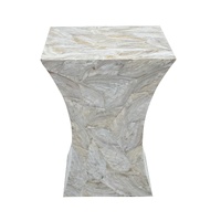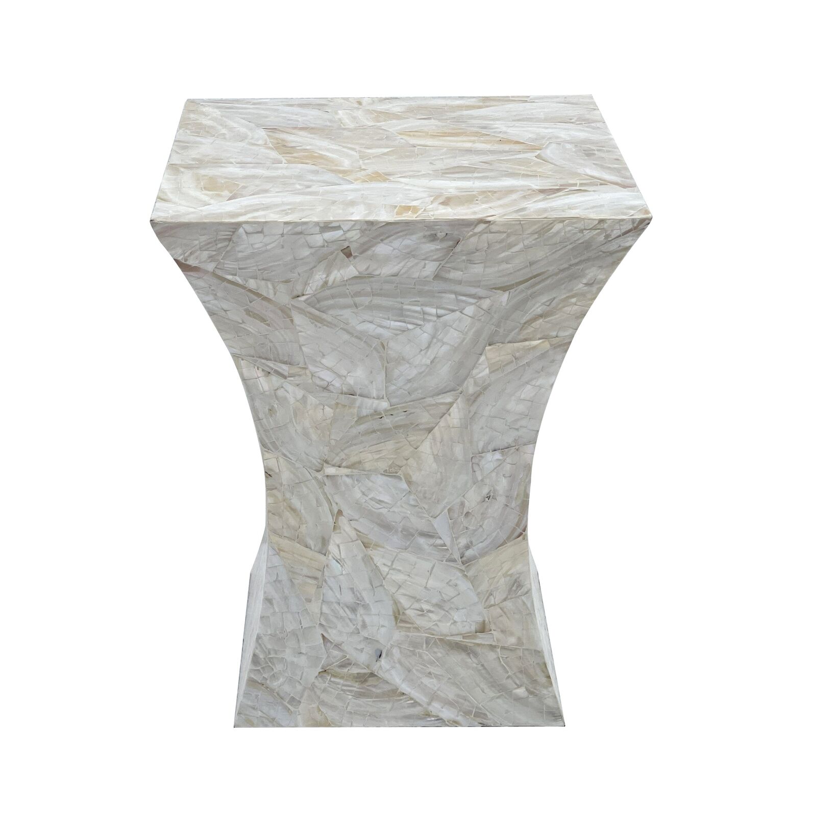 GLEESON MOTHER OF PEARL HAND MADE SIDE TABLE Create a statement piece in your living space with this beautiful, handcrafted mother of pearl side table from Gleeson! It will add a touch of elegance and sophistication to any room, making it a must-have for any home. The intricate details and stunning craftsmanship will surely impress and elevate your decor.